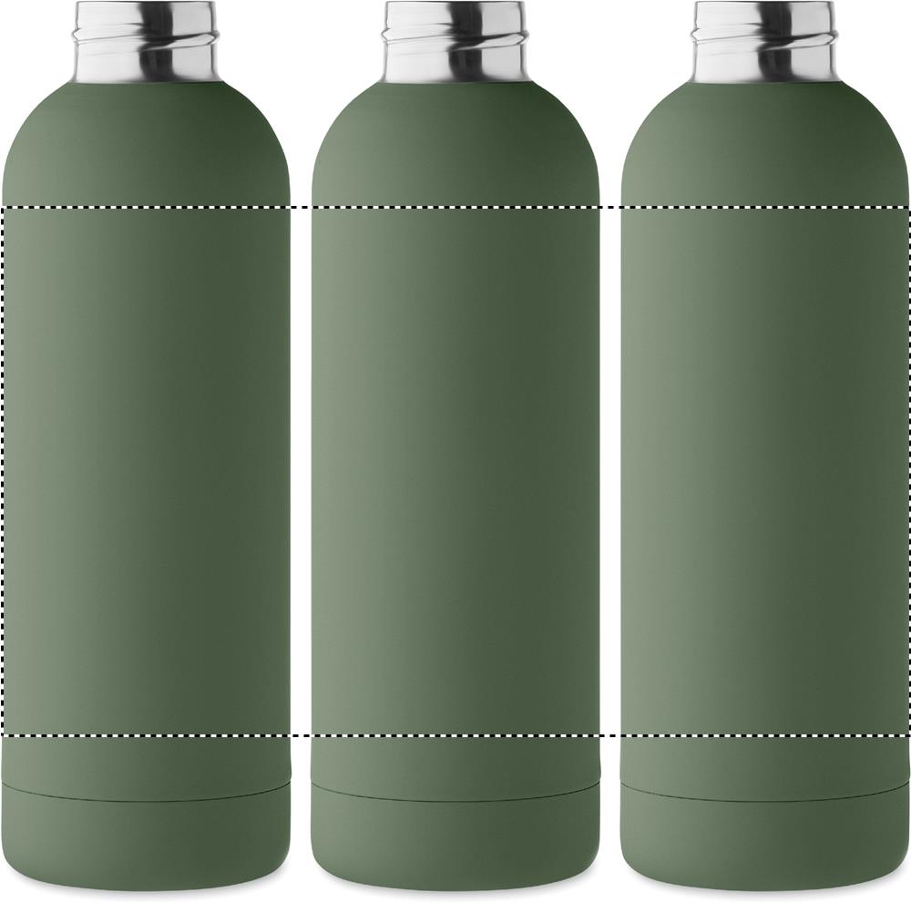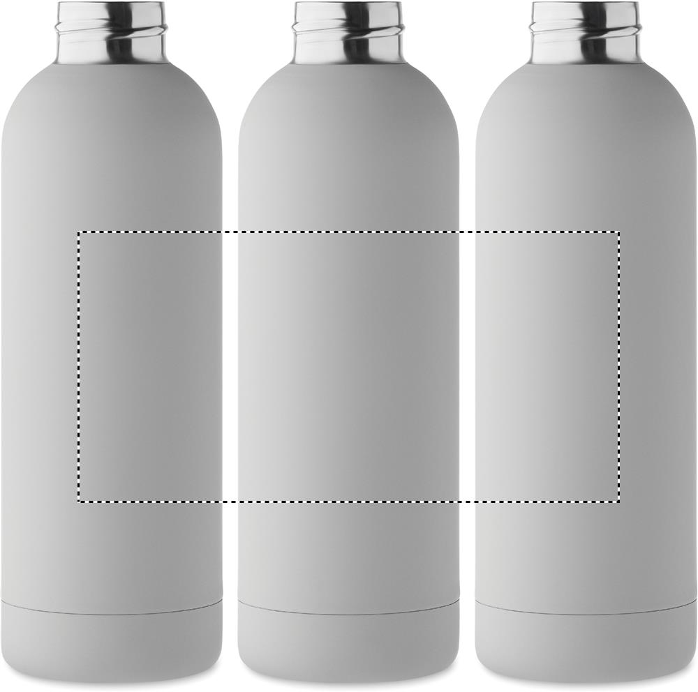 Taaskasutatud roostevabast terasest (90% taaskasutatud roostevabast terasest ja 10% roostevabast terasest) topeltseinaga vaakumisolatsioonipudel kummiviimistluse ja silikoonkäepidemega. Mahutavus: 500 ml.