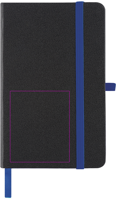 Musta PU kaanega märkmik ja 160 joonega lehte. Elegantne välimus läbi värviliste aktsentide. Trükime teie logo kaanele.