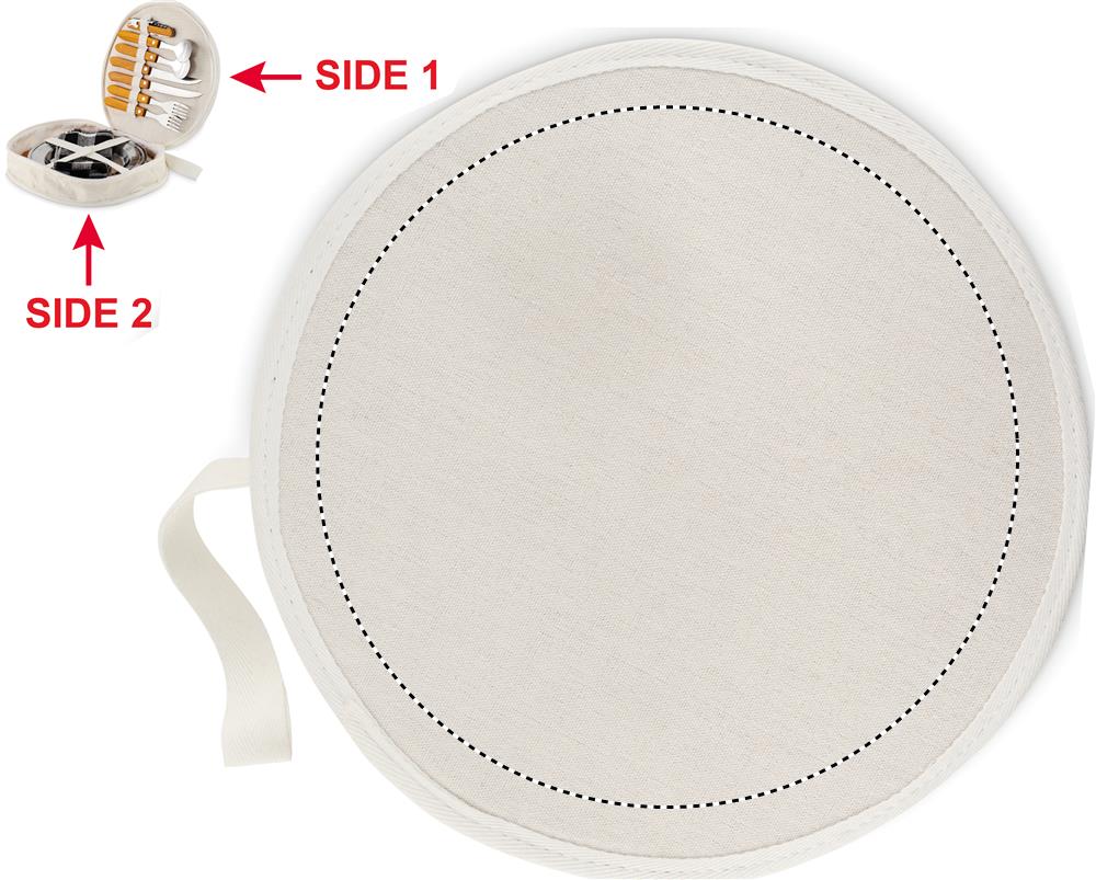 Komplektis 2 lauanõude piknikukomplekti. Kaasa arvatud terasest ja bambusest kahvel, nuga, lusikas ja pudeliavaja. Esitatakse puuvillases kotis. Bambus on looduslik toode, ühe eseme värvis ja suuruses võib esineda väikesi erinevusi, mis võivad mõjutada lõppviimistlust.