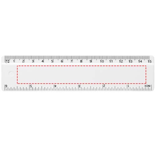 Tugev taaskasutatud plastist joonlaud, mille märgistused on saadaval nii tollides kui ka sentimeetrites.