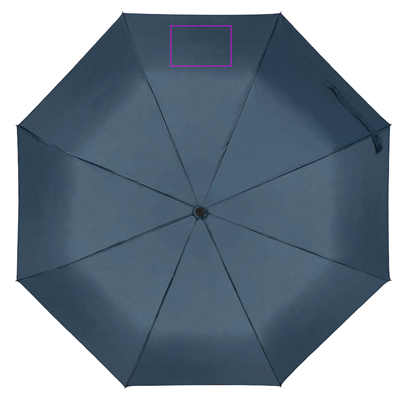 Klaaskiust raamiga automaatne taskuvihmavari, ümbertöödeldud PET-pudelitest kate, puidust käepide ja randmerihm. Teie logo trükitakse ühele segmendile.