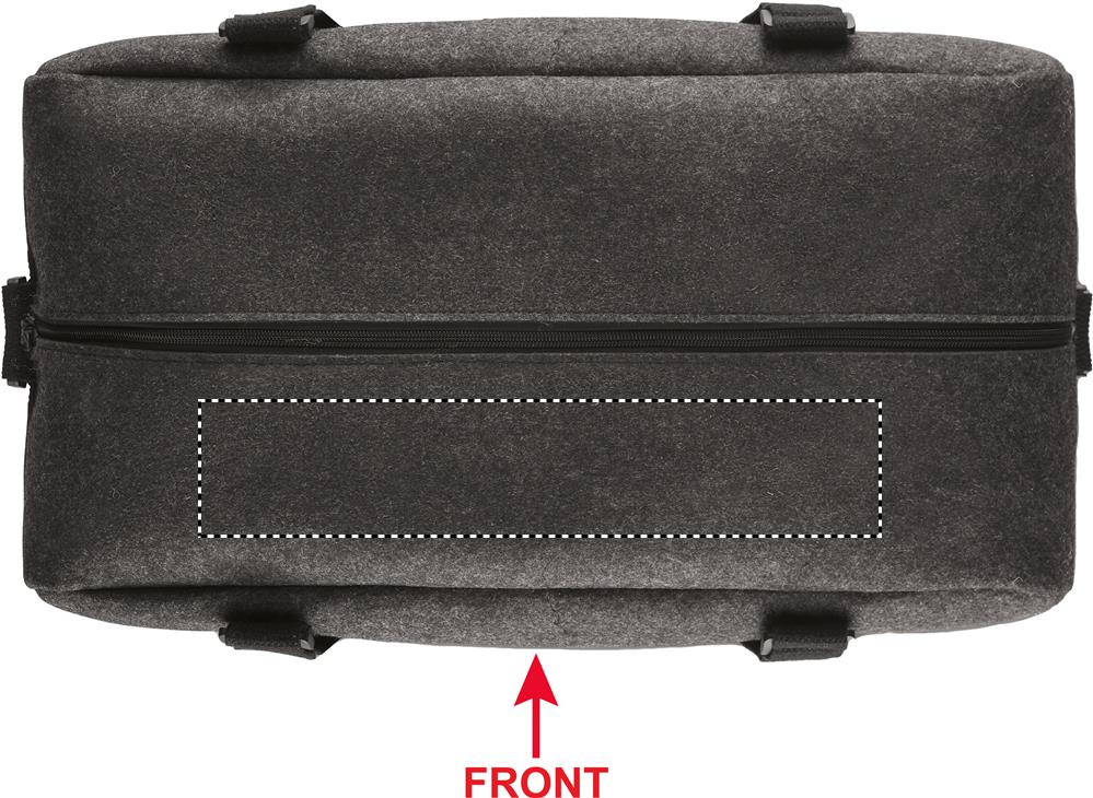 RPET vildist spordi-/fitnessi- või nädalavahetusekott lukuga esitasku, lõuendist käepidemete ja eemaldatava reguleeritava õlarihmaga.