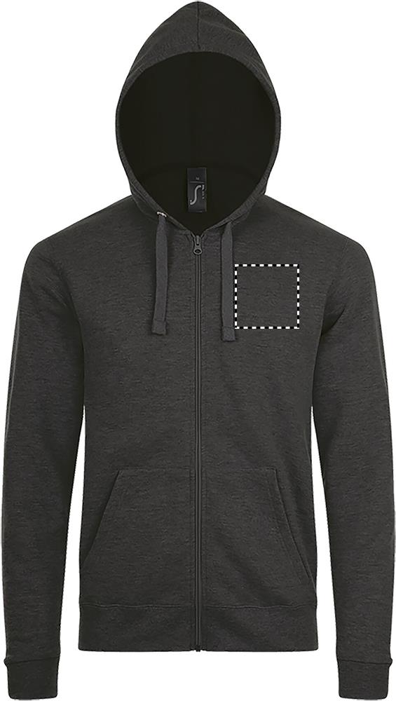 SOL'S STONE Unisex tõmblukuga kapuuts/ kapuuts täis lukuga ja ees kängurutaskuga. Pingutusnööriga kapuuts toon-toonis nööridega. Soonik mansett allääres ja varrukatel. Küljeõmblus. Kaela silt puudub. Kangadetailid: 260g/m², harjatud materjal 50% puuvill - 50% polüester, OEKO-TEX®. Müüakse ainult trükiga