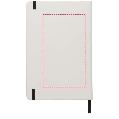 Valge A5 märkmik värvilise elastse kinnise ja paelaga. Sisaldab 80 lehte (60g/m2) joonega paberit. Kaanele võimalik digitrükk.