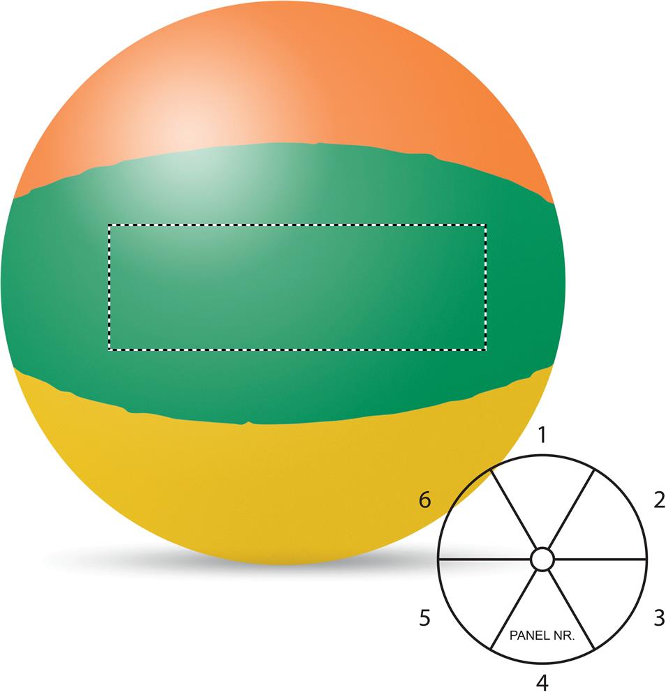 Värviliste triipudega täispuhutav rannapall. Täispuhutud: Ø23,5cm