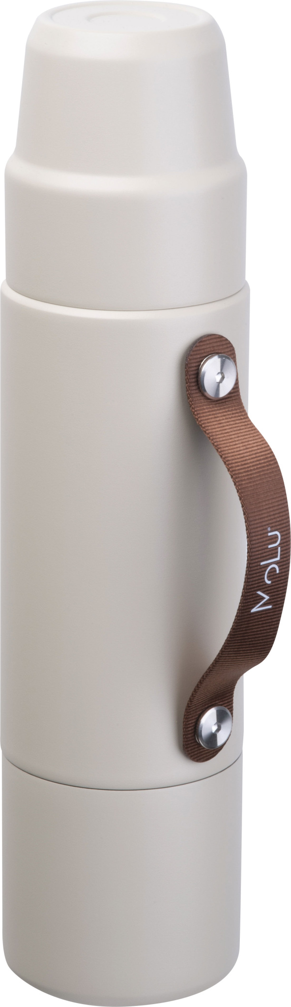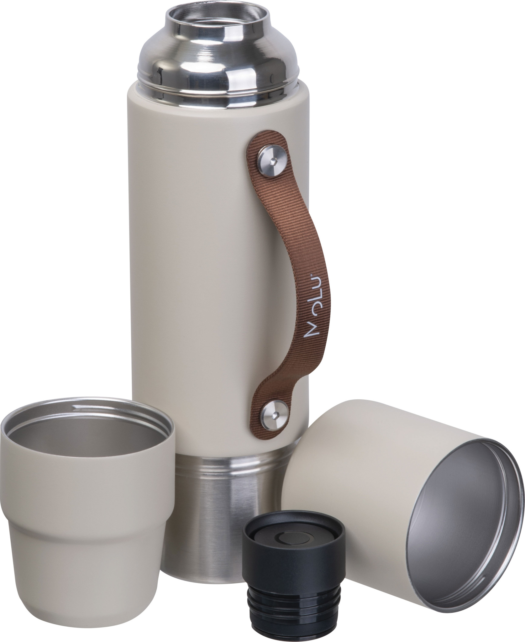 Valmistatud taaskasutatud roostevabast terasest, topeltseinaga ja vaseisolatsiooniga – hoiab joogid kuuma või külmana kuni 20 tundi. Komplektis: kaks tassi. Elegantse pruuni käepidemega – ideaalne joomiseks, valamiseks või kaasaskandmiseks.