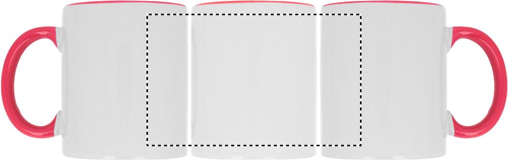 Keraamiline kruus mahuga 300 ml spetsiaalse kattega sublimeerimiseks värvilise käepidemega ja sees. Individuaalne pakkimine valgesse pappkarpi.