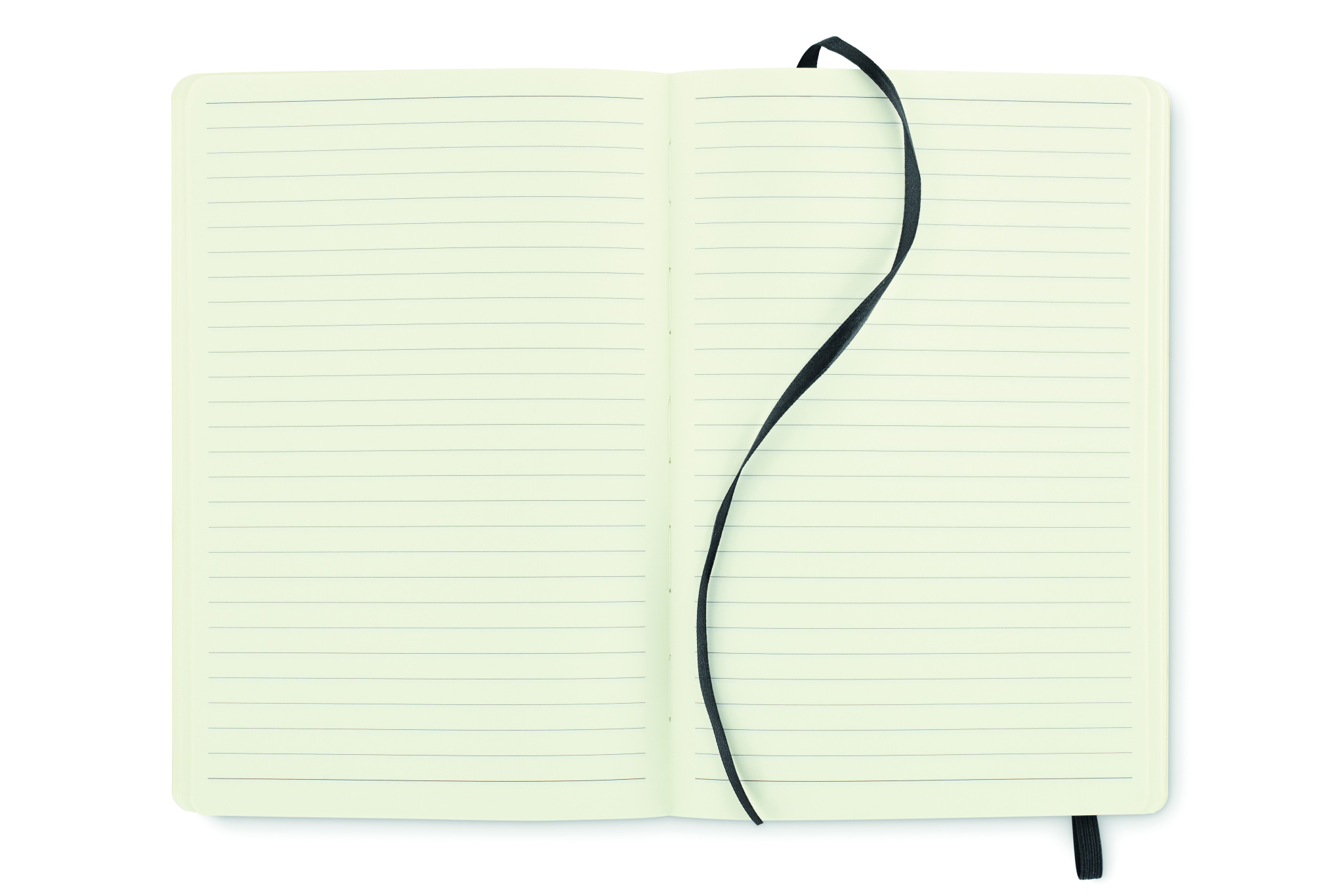 A5-muistikirja, jossa on kannet kierrätettyä PU:ta. 160 viivoitettua sivua kierrätyspaperia (80 arkkia). Joustava sulkunauha ja nauhallinen kirjanmerkki. Laajennettava sisätasku takana. FSC®-certified | FSC MIX CREDIT, P7.1, FSC-C213206