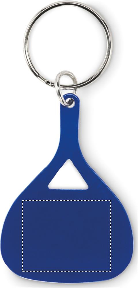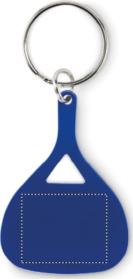 Kierrätysalumiinista valmistettu melan muotoinen avaimenperä.