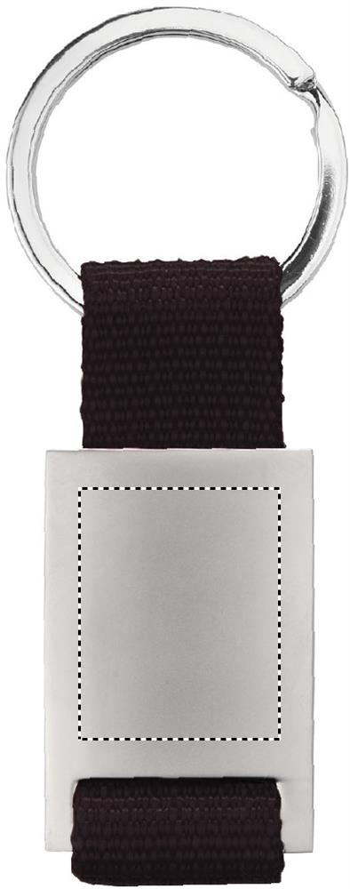 Metallinen avaimenperä värillisellä polyesterinauhalla.