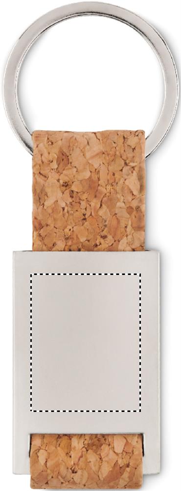 Metallinen suorakulmainen avaimenperä jossa on korkkia.