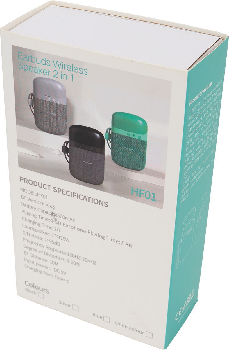 Bluetooth-kaiutin HF01 sisäänrakennetuilla nappikuulokkeilla 2-in-1