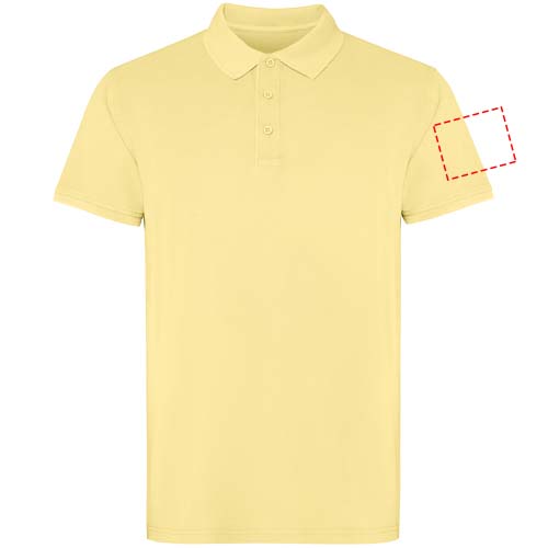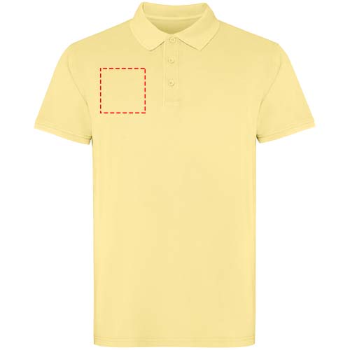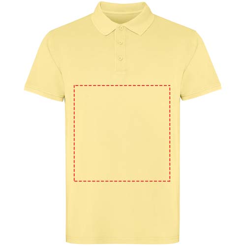 Lyhythihainen unisex-poolopaita. Happopesuviimeistely. Uurrettu 1 x 1 -kaulus ja hihansuut, sivuhalkiot. Sävy sävyyn -peitetikkaus. Napituslista, jossa kolme nappia.