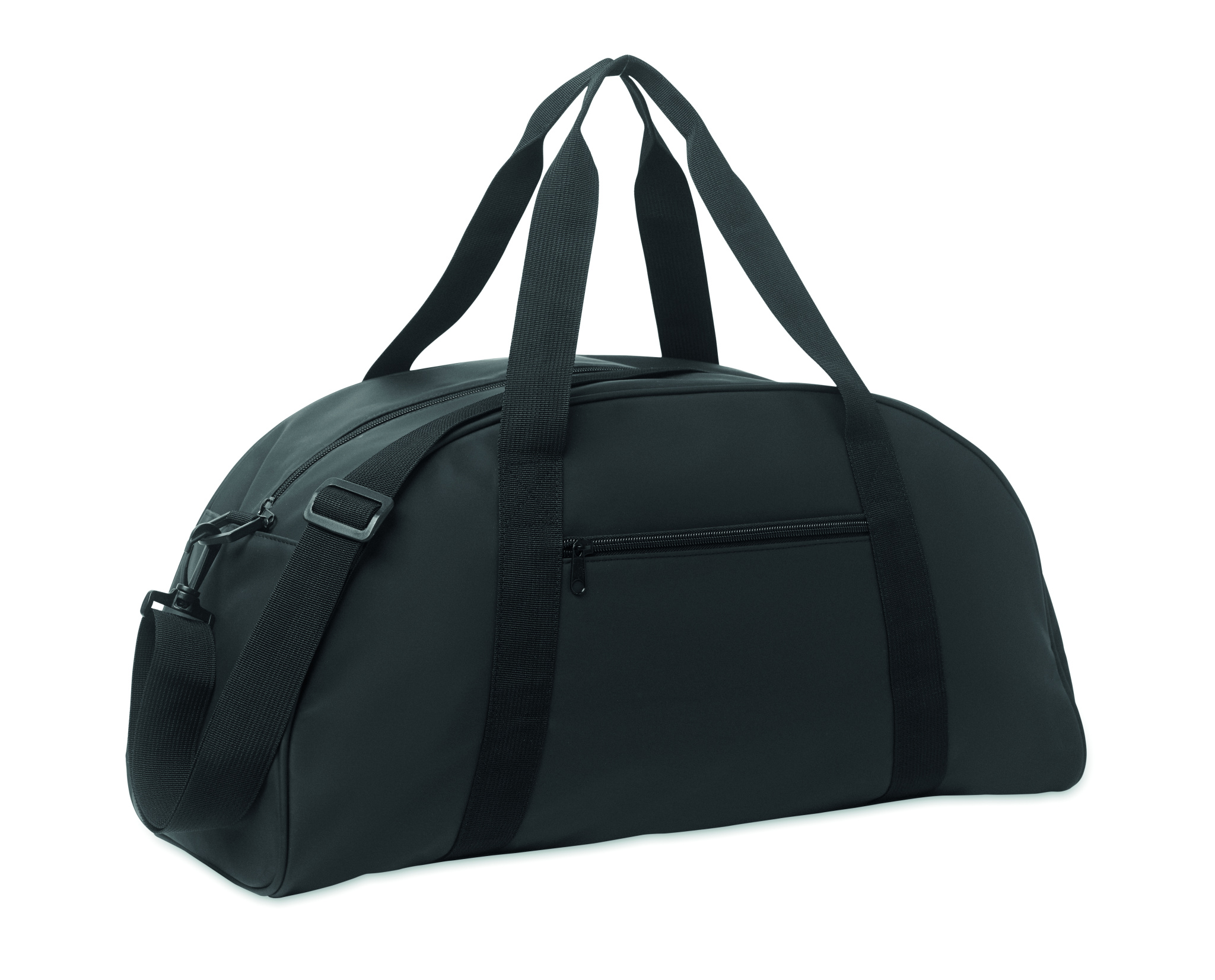 Duffle laukku pehmeää PU:ta, jossa pohjavahvike. Yksi päälokero, vetoketjullinen etutasku ja vetoketjullinen sisätasku. 210D RPET polyesterivuori. 2 kahvaa ja yksi säädettävä ja irrotettava olkahihna