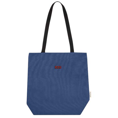 GRS-sertifioidusta kierrätetystä kankaasta valmistettu kassi GRS-sertifioidulla RPET-vuorella. Tässä monipuolisessa kassissa on pehmustettu lokero 15-tuumaiselle kannettavalle tietokoneelle ja kaksi sisätaskua puhelimelle, lompakolle tai lisätarvikkeille sekä helppo nappikiinnitys ja mukavat puuvillaiset kantohihnat. Mattapintainen metallikoristelaatta saa logon loistamaan.