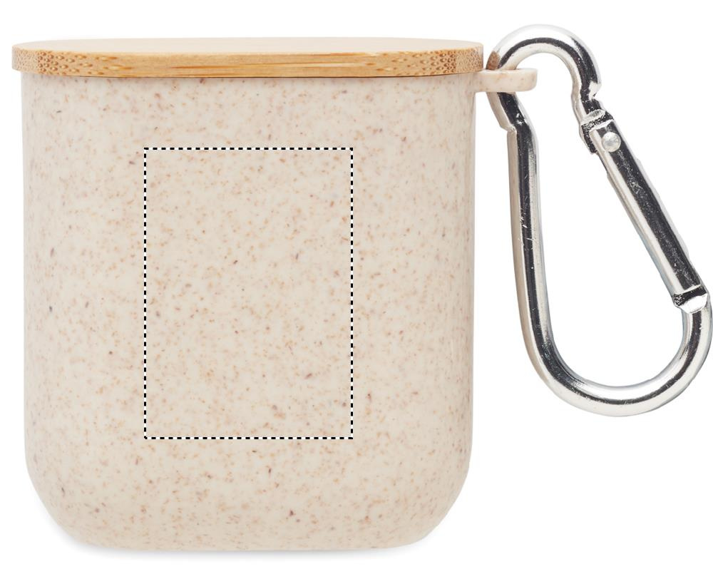 Kaapelisarja vehnänolki-/ABS-kotelossa, bambupäällinen ja karbiinihaka. Kansi toimii puhelintelineenä (vaakasuorassa asennossa). Kaapelitulo 2in1 USB-C/A, lähtö Type-C ja 2in1-nastainen.