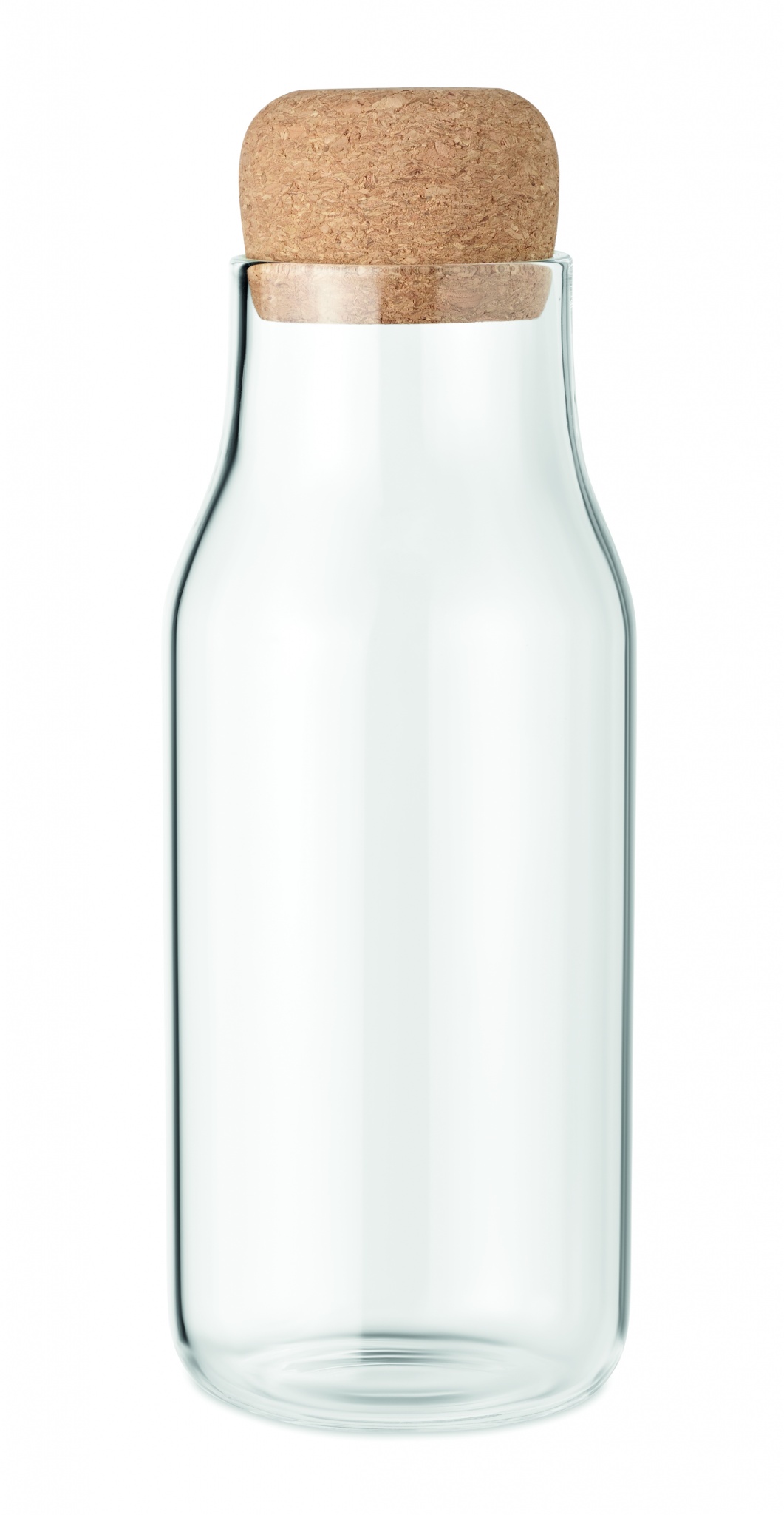 600 ml borosilikaattilasipullo korkista valmistetulla korkilla. Borosilikaattilasiin ei voi kaiverruttaa.