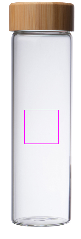 Lasipullo bambukannella ja täyttökapasiteetti 500 ml. Logosi kaiverretaan kanteen.