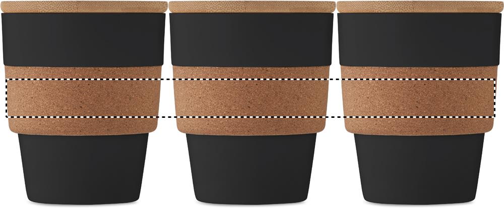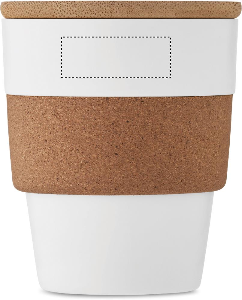 Yksiseinäinen muki kierrätetystä PP:stä, jossa korkkisuojus ja bambukansi. Tilavuus: 300 ml. Koska kyseessä on yksiseinäinen muki, lämmönsiirtymistä voi silti tapahtua.
