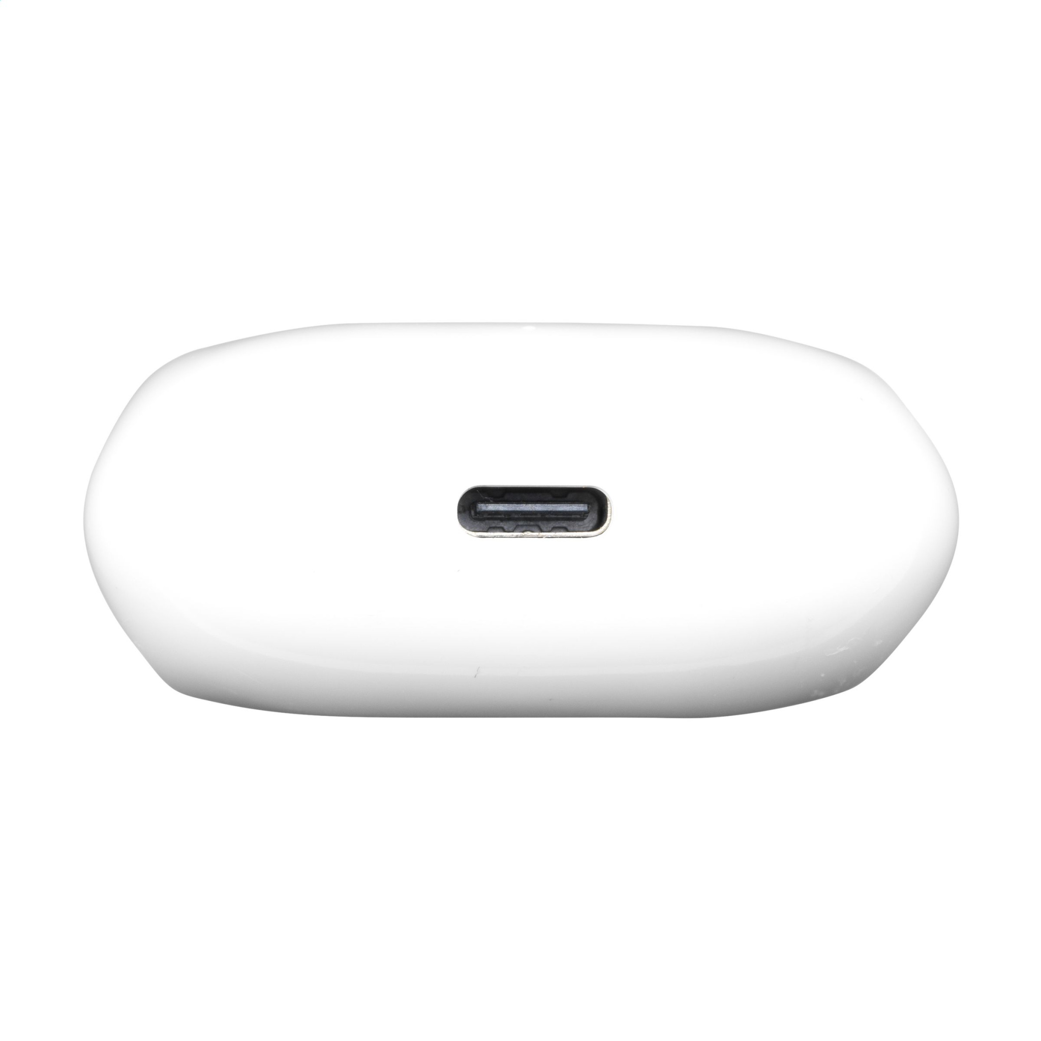 Uuden sukupolven aidot langattomat kuulokkeet latauskotelossa, joka on valmistettu kierrätetystä ABS:stä. Nämä kuulokkeet käyttävät BT 5.1:tä sujuvan yhteyden takaamiseksi. Kuulokkeiden akku on 30 mAh, ja niiden lataaminen kestää vain tunnin 200 mAh:n latauskotelolla. Erinomainen äänentoisto ja säädettävä äänenvoimakkuus yhdistettynä automaattiseen pariliitostekniikkaan, joka tarjoaa automaattisen pariliitoksen ja kosketusohjauksen. Soita helposti handsfree-puheluita ja nauti musiikista ilman rajoittavia kaapeleita. Yhteyden kantama on 10 metriä. Sisältää PVC-vapaan latauskaapelin Type-C ja käyttöohjeen. RCS-sertifioitu. Kierrätysmateriaalia yhteensä: 62,5 %. Jokainen tuote on pakattu erikseen.