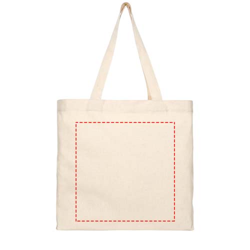 Kierrätetystä puuvillasta ja polyesteristä valmistettu kassi 210 g/m². Kierrätetty puuvilla valmistetaan valmistusmateriaalin ylijäämästä, jota syntyy tekstiilitehtaissa leikkaamisen aikana. Kauppakassi jossa on levike ja suuri päälokero. Kahvojen korkeus ylhäältä mitattuna. Kestää 10 kilon painon. Varsinaisen tuotteen väri saattaa vaihdella hieman tuotantoprosessin luonteen takia.