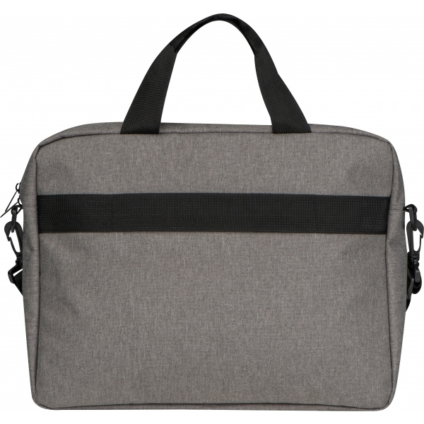 Kannettavan tietokoneen laukku valmistettu 600D kierrätetystä PET:stä. Laukussa on irrotettava ja säädettävä olkahihna liikkuvalla pehmusteella, kaksi kantokahvaa, lisätasku sisällä ja vetoketjullinen etutasku. Painamme logosi etuosastoon.