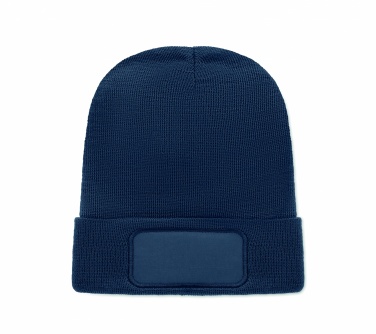 Unisex-neulottu pipo pehmeästä, joustavasta RPET-polyesteristä, jossa on taite ja kangasmerkki painatusta varten.