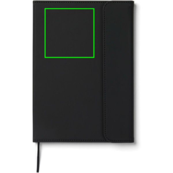 Tyylikäs ja puhdaslinjainen A5-muistikirja. Sen kansi on valmistettu 30 % kierrätetystä mattapintaisesta PU:sta, ja siinä on magneettisuljenta ja integroitu kynäpidike. Sisällä 80 sivua/160 arkkia 70 g/m² viivoitettua kierrätyspaperia, joka sopii kaikkiin muistiinpanoihisi. Paperinen sisäosa voidaan vaihtaa, mikä mahdollistaa pitkäaikaisen käytön. GRS (Global Recycled Standard) -sertifiointi takaa, että kierrätysmateriaalien koko toimitusketju on sertifioitu. Kierrätysmateriaalin kokonaismäärä perustuu tuotteen kokonaispainoon. 54 % tästä tuotteesta on GRS-sertifioitua kierrätyspaperia ja 5 % GRS-sertifioitua kierrätyshuopaa.