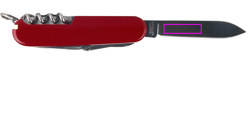 Savybės: 1.Didelis peiliukas 2.Mažas geležtė 3.Kamščiatraukis 4.Skardinių atidarytuvas 5.Mažas atsuktuvas (3mm) 6.Dangtelių pakėlimas 7.Atsuktuvas (6mm) 8.Vielų nuėmiklis 9.Reamer 10.Raktų žiedas 11.Pincetas 12. Dantų krapštukas