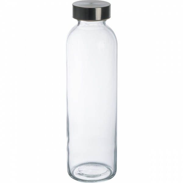 600 ml talpos stiklinis geriamasis butelis su nerūdijančio plieno dangteliu. Butelis tinka gazuotiems gėrimams. Ant butelio uždedame jūsų logotipą. Graviravimas ant dangtelio galimas pagal pageidavimą.