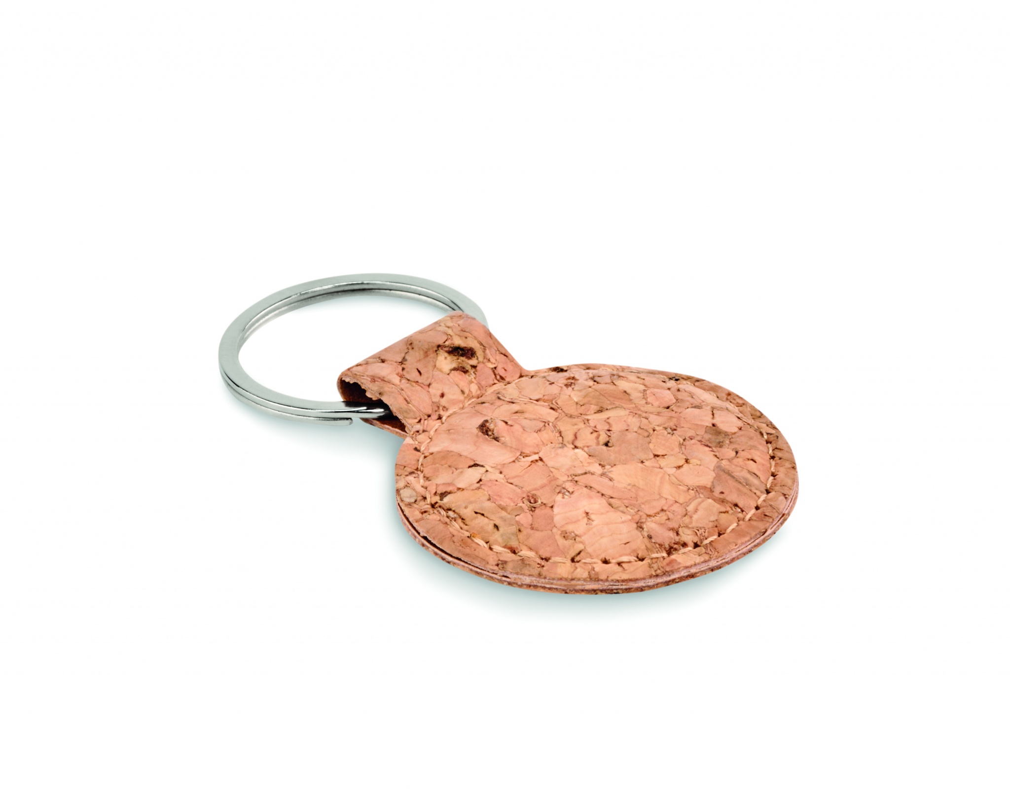 Apaļš korķa atslēgu piekariņš. Korķis ir 100% dabīgs materiāls. Tā strukturālā rakstura un virsmas porainības dēļ gala izdrukas rezultātam uz vienu vienumu var būt novirzes.