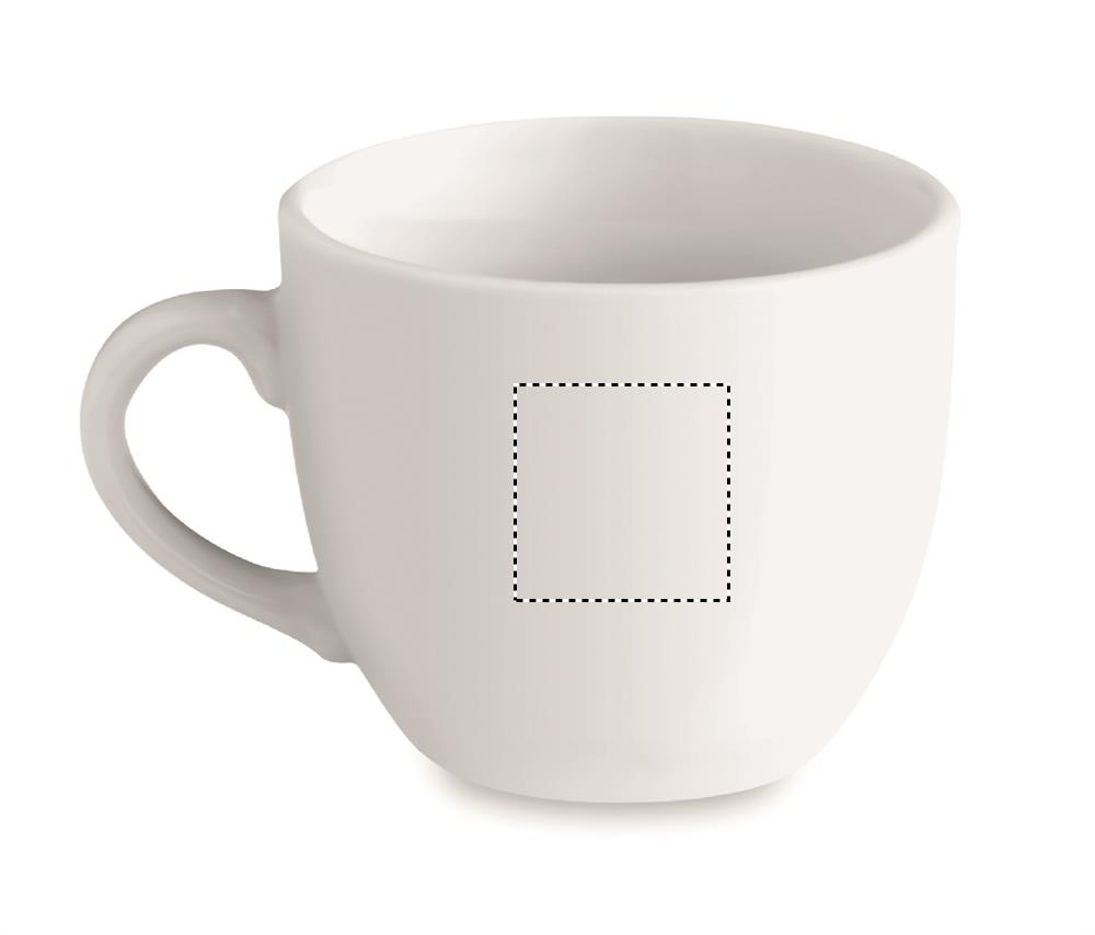 Porcelāna espresso krūze un apakštase. Krūzes tilpums: 80 ml. Lielapjoma iepakojums. Tampondruku nevar mazgāt trauku mazgājamā mašīnā. Keramikas pārnesums ir mazgājams trauku mašīnā.