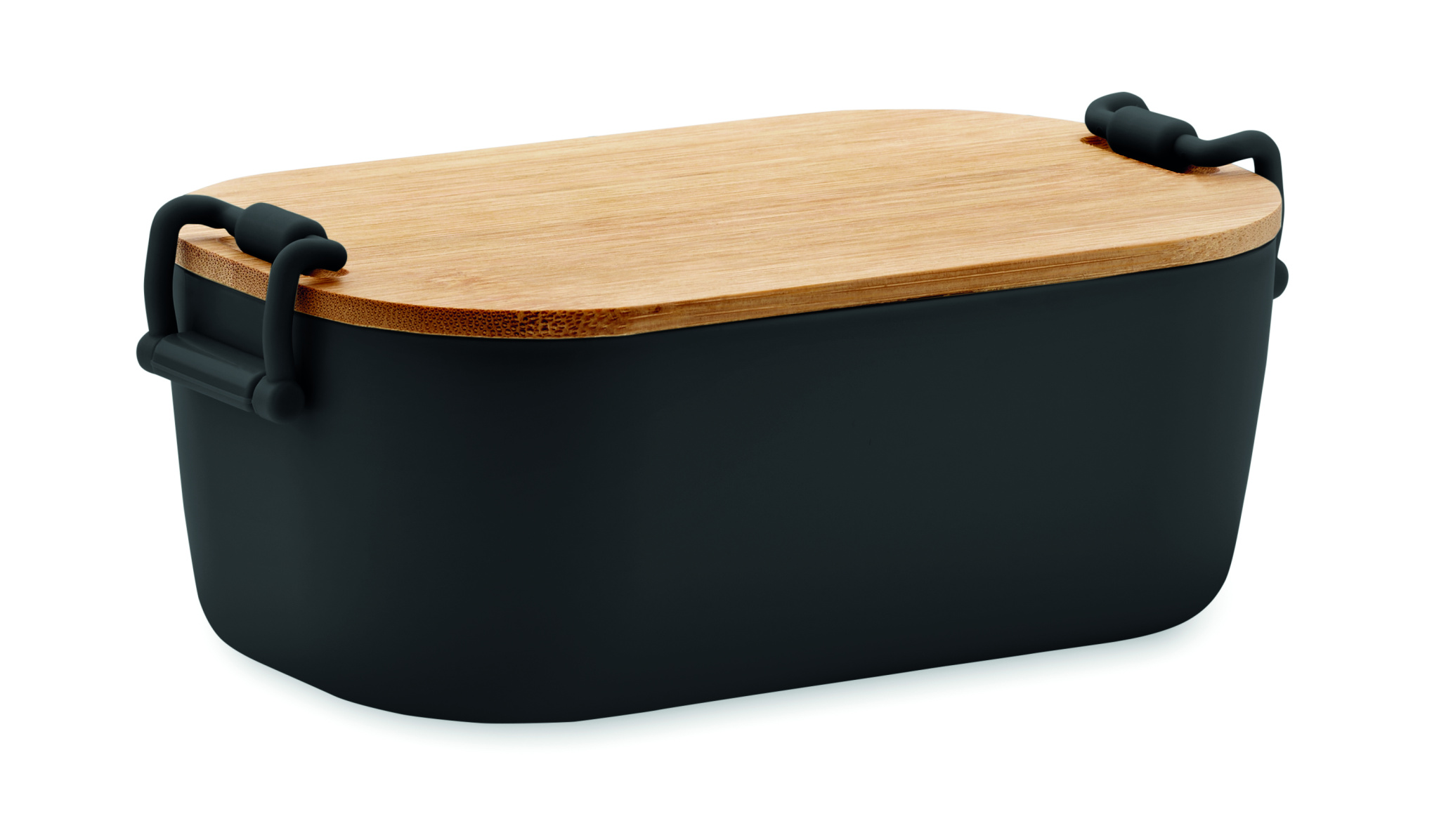 PP pusdienu kastīte ar 2 sānu aizdari un bambusa vāku. Tilpums 700 ml.
