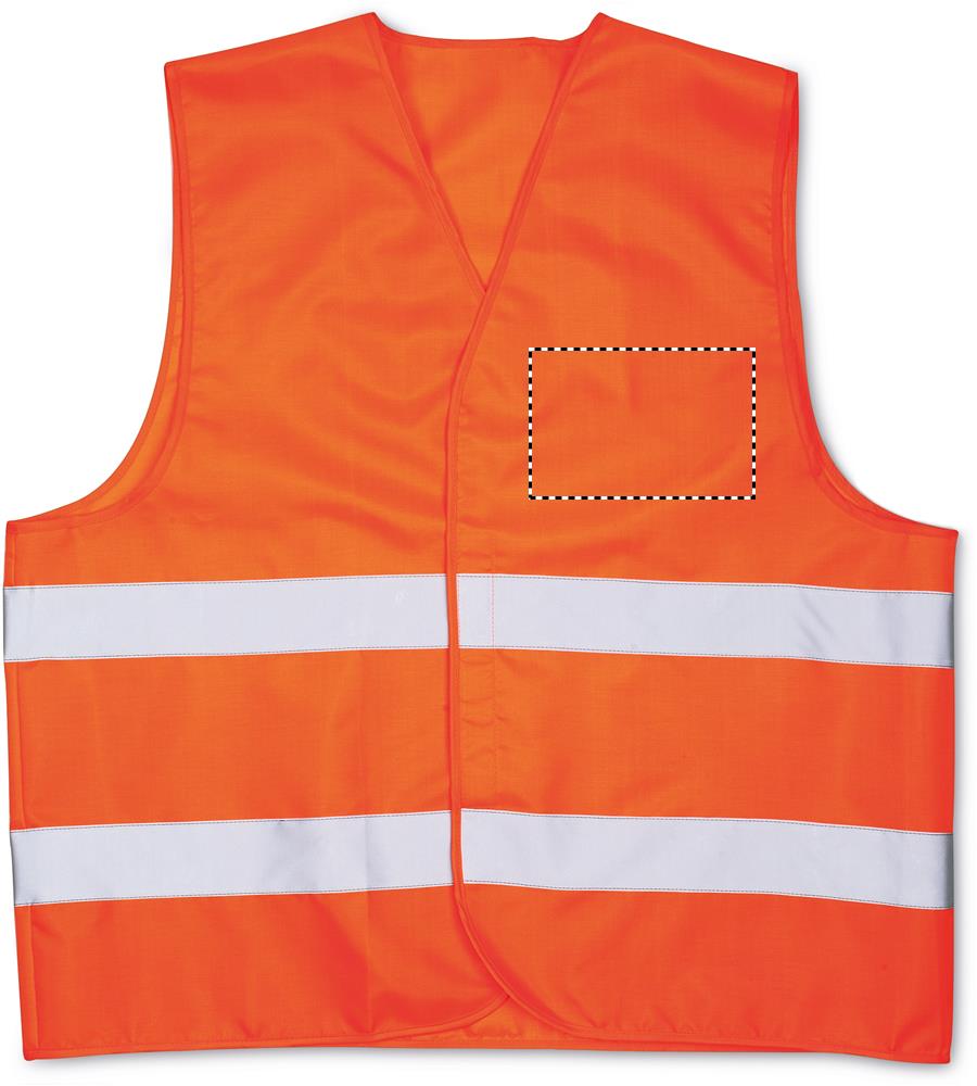 Drošības veste izgatavota no 100% trikotāžas poliestera ar 2. klases labi redzamu atstarojošu lenti. EN ISO 20471.