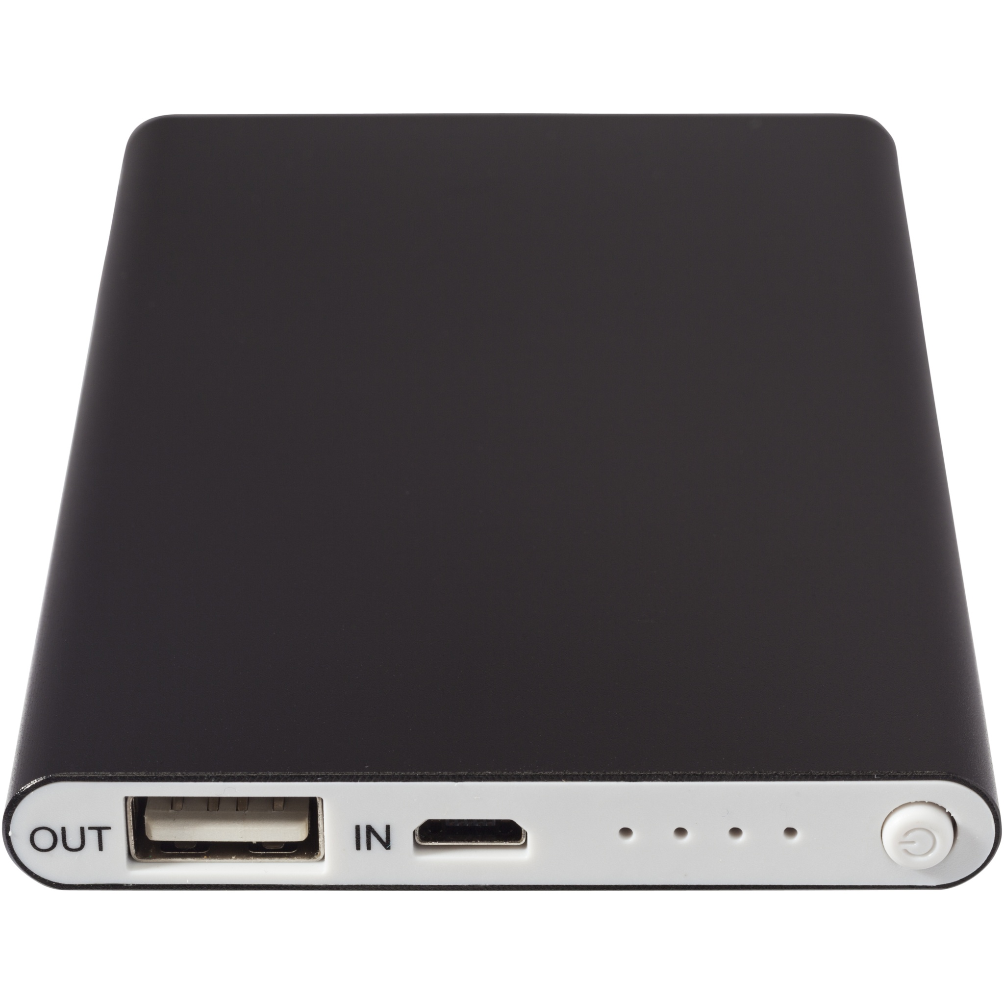 Изящное легкое алюминиевое зарядное устройство с литий-полимерным аккумулятором класса А емкостью 4000 мА/ч. Светодиодные индикаторы горят во время зарядки и показывают оставшийся заряд аккумулятора повербанка. Входная и выходная мощность зарядного устройства – 5 В / 1 А. Включает кабель для зарядки с коннекторами USB и Micro-USB. Предлагается в белой подарочной коробке.