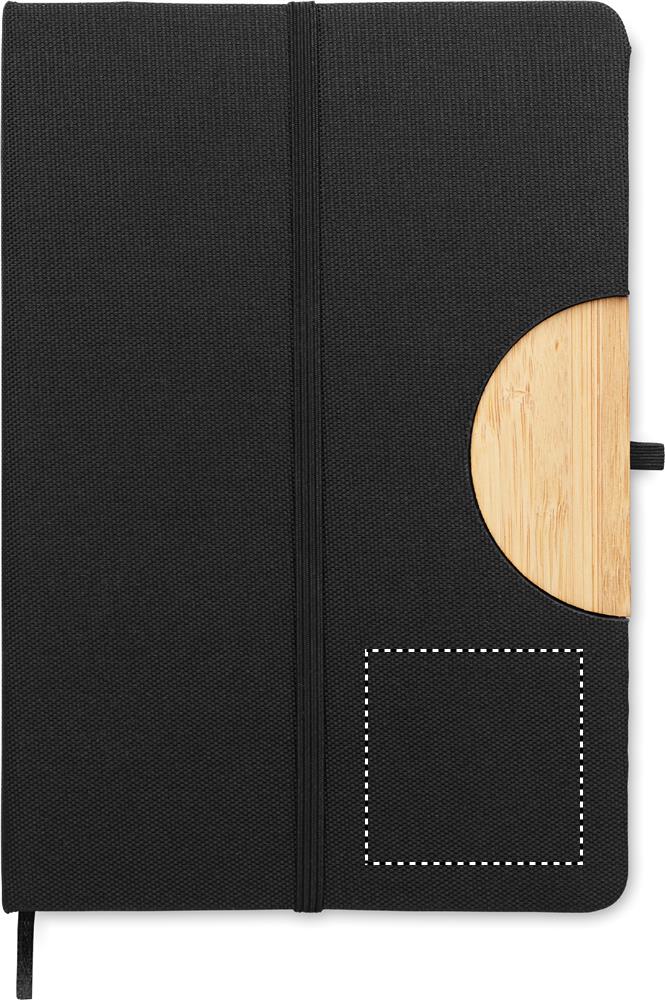 Блокнот формата A5 в твердой обложке из 600D RPET и бамбуковыми деталями с функцией подставки для смартфона. В переплете. 160 линованных страниц (80 листов). Переработанная бумага 70 гсм. Эластичный ремешок в тон, закладка для страниц и держатель для ручки.