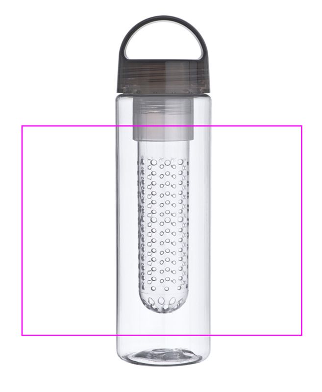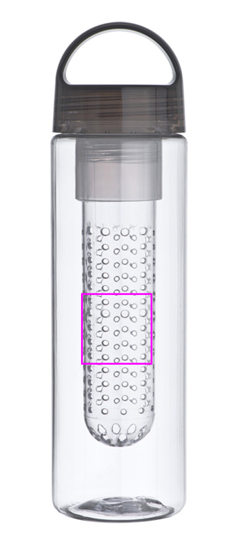 Пластиковая бутылка для питья с заварником для (например) фруктов и емкостью 650 мл. Мы напечатаем ваш логотип на бутылке.