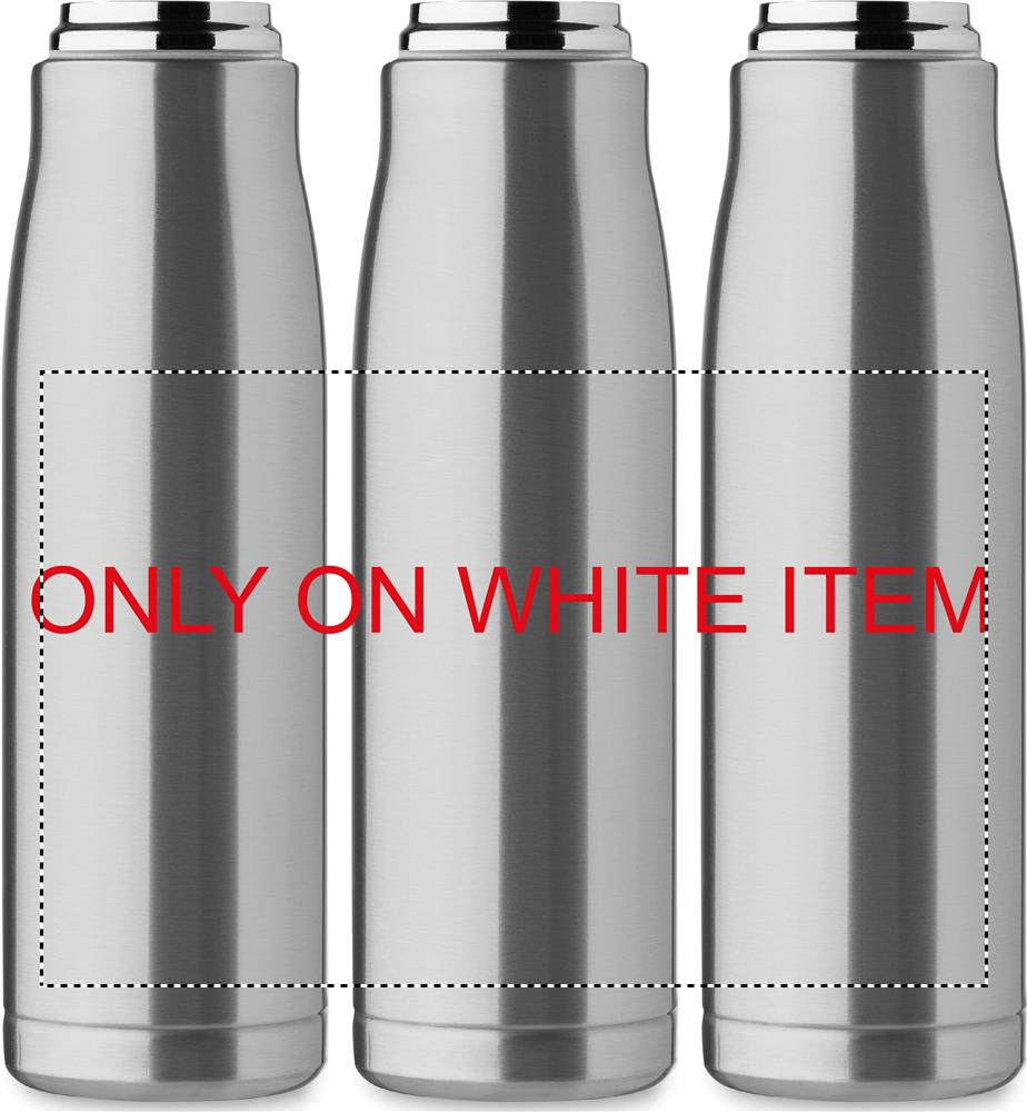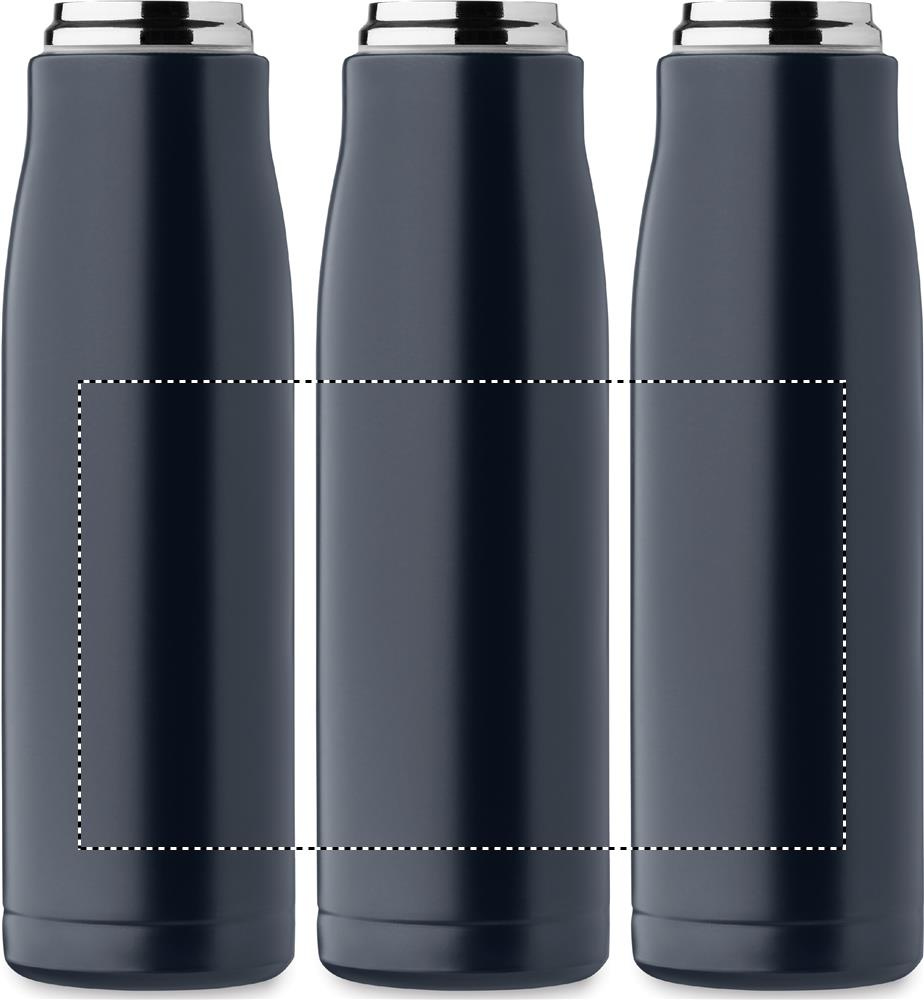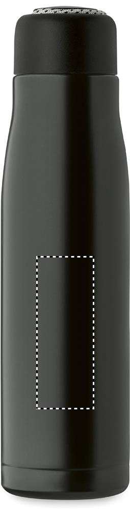 Double wall recycled stainless steel insulated vacuum bottle (90% recycled stainless steel and 10% stainless steel) with integrated cord grip on PP lid. Leak-free. Capacity: 500 ml.