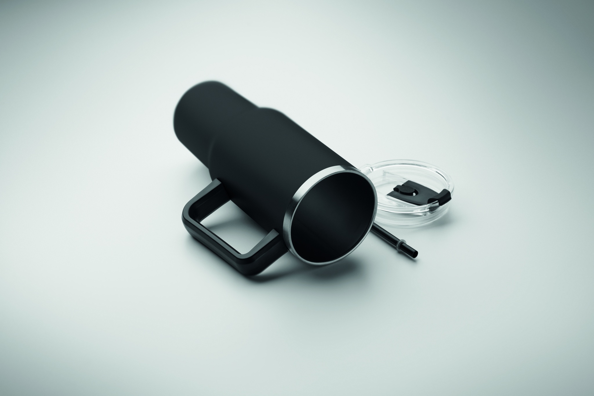 Стакан из переработанной нержавеющей стали с двойными стенками (90% переработанной нержавеющей стали и 10% нержавеющей стали) с крышкой-соломинкой, включая полиэтиленовую трубочку. Емкость 1200 мл.
