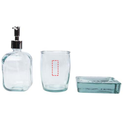 Набор для ванной из 3 предметов из 100% переработанного стекла, в который входят: дозатор для мыла (450 мл), стакан (430 мл) и мыльница (13 x 10 см). На изготовление переработанного стекла затрачивается меньше энергии, сырья и добавок, чем на изготовление традиционного стекла. Можно мыть в посудомоечной машине.