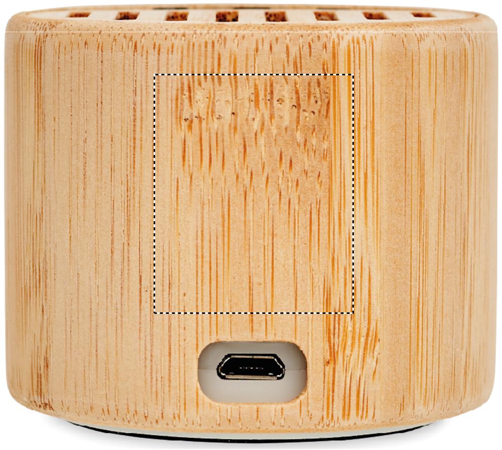 Беспроводная колонка 5.3 в бамбуковом корпусе со светодиодным индикатором. 300 мАч литионный аккумулятор в комплекте. Выход: 3 Вт, 4 Ом и 5 В. Время воспроизведения около 4 ч.