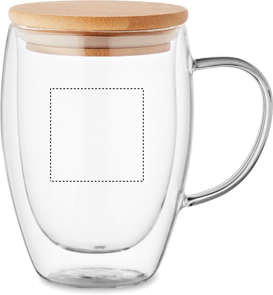 Кружка из боросиликатного стекла с двойными стенками, ручкой и бамбуковой крышкой. Объем: 300 мл.