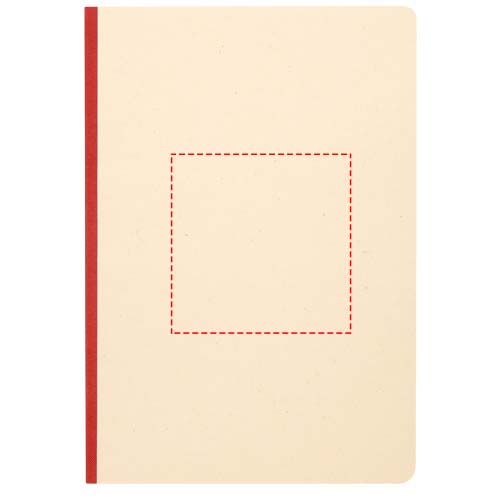 Liliana блокнот формата А5 в мягкой обложке со скругленными углами и 72 линованными листами бумаги плотностью 90 г/м². Обложка изготовлена из RPET и бумаги из сахарного тростника.