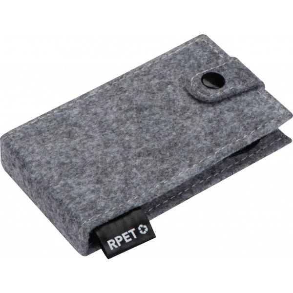 Привлекательный маникюрный набор из фетра (переработанный ПЭТ). Включает в себя ножницы для ногтей, пилочку, кусачки для ногтей, пинцет и два пушера для кутикул. Мы размещаем ваш логотип на передней части футляра.