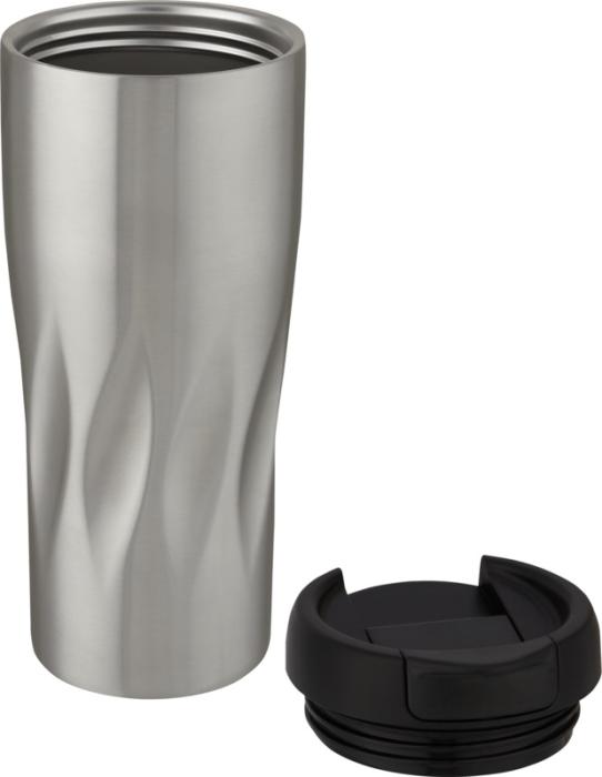 Медный термостакан с двойными стенками, вакуумной изоляцией и навинчивающейся герметичной крышкой с волнистым геометрическим дизайном. Благодаря изоляции и нержавеющей стали 18/8 напитки несколько часов остаются горячими или холодными. Без содержания BPA, протестировано и одобрено согласно немецкому законодательству о безопасности пищевых продуктов (LFGB), проверено на содержание фталатов согласно нормам REACH. Объем 450 мл. Рекомендуется мыть вручную. В подарочной коробке из переработанного картона.