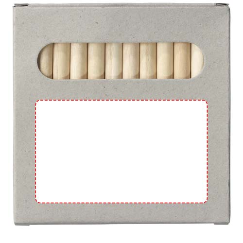 12 цветных карандашей в бумажной коробке. Нанесение не предлагается на элементы.