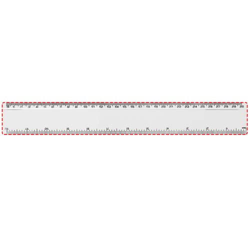 Линейка из твердой пластмассы с разметкой и в сантиметрах, и в дюймах.