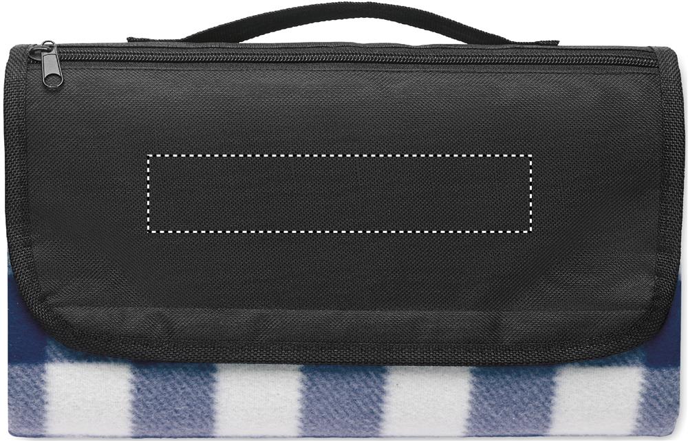 Складывающийся плед для пикника из флиса RPET 150 гр/м² с водостойким покрытием PEVA с обратной стороны. Включает передний карман на молнии и короткий ремень для переноски.