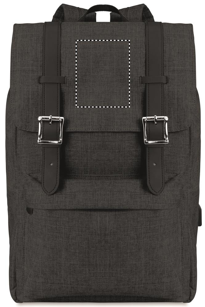 Рюкзак из полиэстера 600D с мягкими шлейками. Внутри 1 отделение для 15-дюймового ноутбука и USB-кабель для зарядки. Декоративные ремни закрываются на магните. Фронтальный карман на молнии.