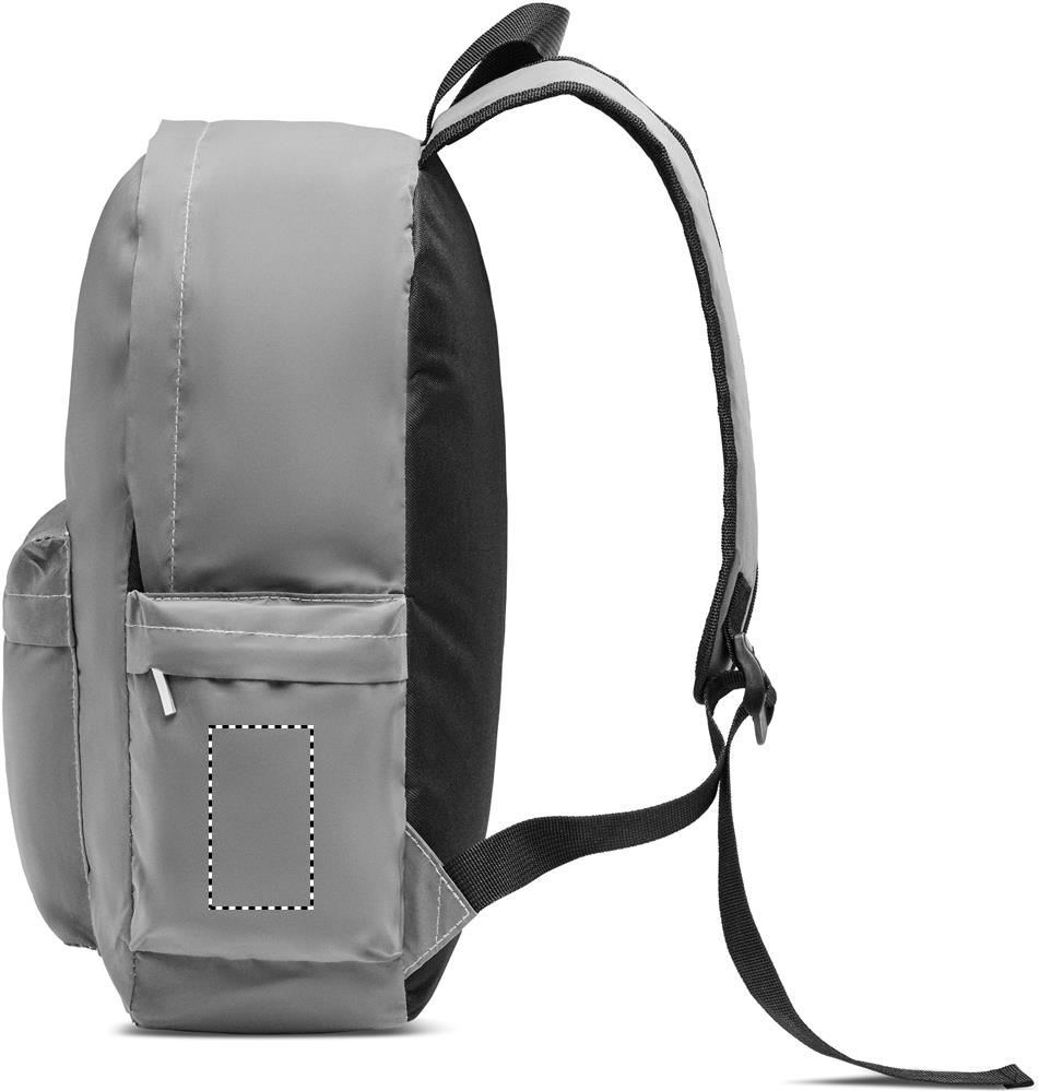 Рюкзак светоотражающий из полиэстера 190T. Имеет отделение для ноутбука 15 дюймов. Передний карман на молнии, боковой сетчатый карман и боковой карман на молнии. Для комфорта мягкая спинка из переработанного полиэстера 600D.